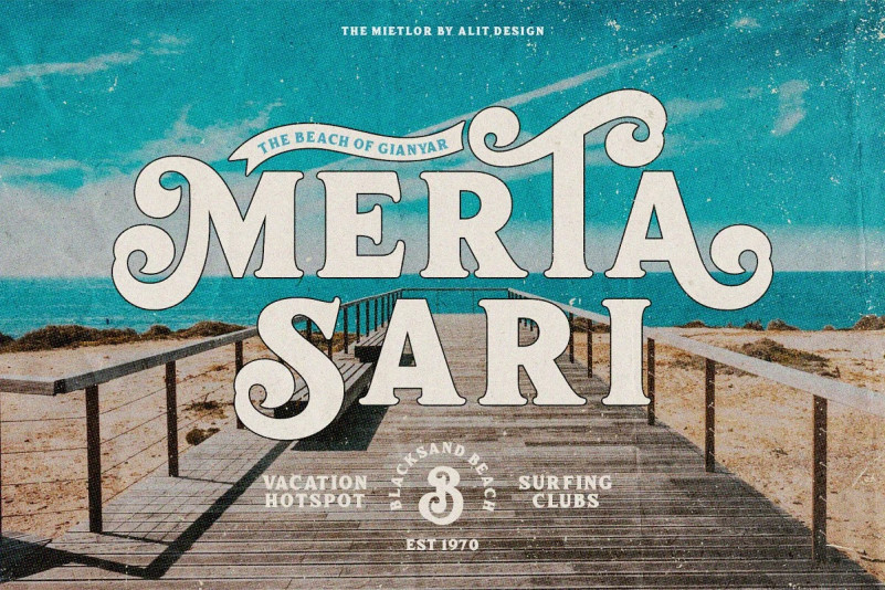 The Mietlor Typeface is very suitable for making designs with retro concepts, simple and playful designs, for example making magazine cover designs, music covers, YouTube thumbs, text headers, logotypes and so on with an elegant retort theme. Besides that this font is very easy to use both in design and non-design programs because everything changes and glyphs are supported by Unicode (PUA).
