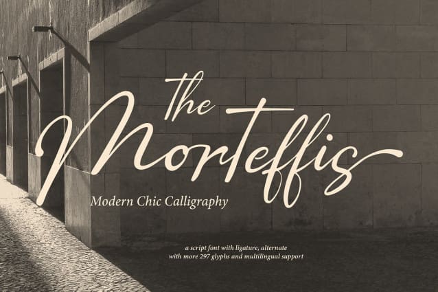 The Morteffis Font | Modern Calligraphphy, from Denustudios, suitable for any projects such as: logos, branding projects, homeware designs, product packaging, mugs, quotes, posters, shopping bags, t-shirts, book covers, name card, invitation cards, greeting cards, label, photography, watermark, special events, and all your other lovely projects that need a Modern Calligraphphy taste.