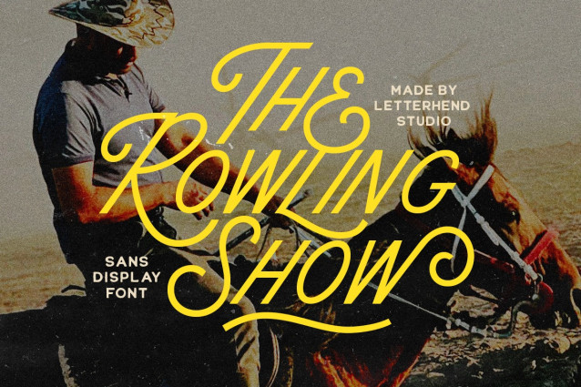 The Rowling Show Font is a monoline sans display font with a retro western twist, blending clean letterforms with stylish swashes that add movement and flair. Its sharp lines and elegant curves make it perfect for posters, logos, event titles, signage, or branding that wants to feel strong, classic, and full of character. This font carries a showtime vibe—confident, dynamic, and a little dramatic—instantly grabbing attention while keeping a touch of vintage sophistication.