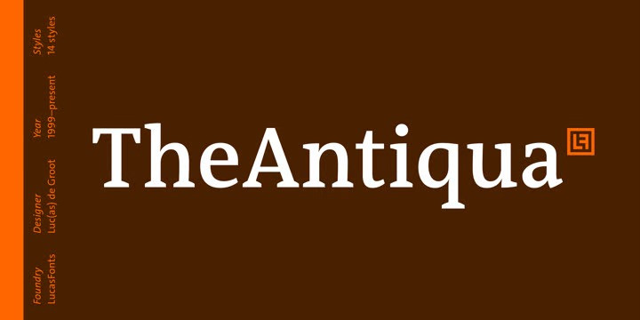 TheAntiqua Serif Font Family, Although the members of the Thesis family have proven to work well as text faces, nothing beats a medium-contrast oldstyle for comfortable immersive reading. Hence TheAntiqua, an all-purpose text face whose name refers to the traditional Dutch/German word for oldstyle.