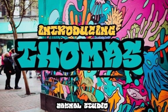 Thomas Display Font, is a unique and fun Grafitti display font perfect for brand and logo designs, and especially great for games. It is perfect for cartoons, branding, and logo designs. You will get a modern, cool, and of course unique logo with this font.