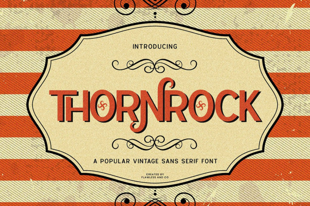 Thornrock Font is a rugged and charismatic sans serif font that draws inspiration from vintage signs, old-school branding, and timeless industrial design. With strong letterforms, classic proportions, and a subtly aged character, Thornrock brings a bold sense of heritage to your work. Perfect for logos, packaging, posters, apparel, and retro-inspired branding, this font combines clean sans-serif clarity with nostalgic flair. Whether you’re designing a whiskey label, a barbershop logo, or a heritage-themed product line, Thornrock stands firm with style and authenticity. Its all-caps build, crisp lines, and solid structure make it a go-to choice for impactful, era-inspired typography.