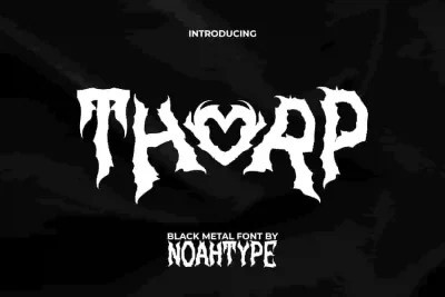 Thorp Black Metal Font is a dark hardcore rock Black Metal font by NoahType. This font has a unique appearance like flames that form the letters so that it can make it dominant in the design. It will be awesome for any designs, such as custom design, brand image, poster, label, invitation, cover, marketing material, menu, printing, product packaging, quotes, signage, website, and many more!