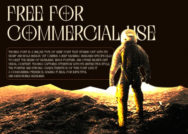 Thorsa Typeface is a unique type of serif font that stands out with its sharp and bold design, yet carries a deep meaning. Designed specifically to meet the needs of headlines, news posters, and other significant visual content, Thorsa captures attention with its distinctive style. The pointed and strong characteristics of this font give it a commanding presence, making it ideal for impactful and memorable headlines.