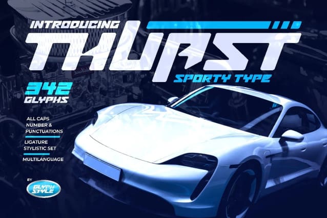Thuast Sporty Font is a sports and speed themed display font. The letters in bold and italics describe speed. Equipped with stylistic options to enrich your creativity.
