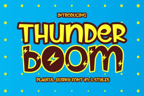 Thunder Boom Font, is display font with playful vibe. This font is so versatile for any creative project. ThunderBoom has 3 quirky styles: regular styles, crack style, and flash style. It gives many options for designing.