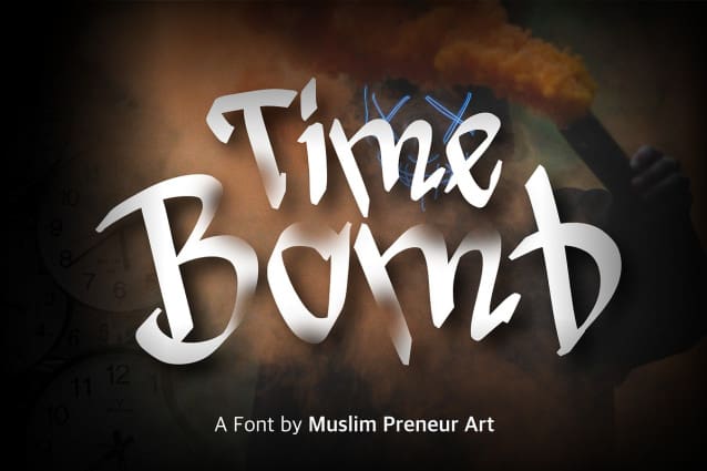 Time Bomb Graffiti Font is handstyle graffiti font by Muslim Preneur Art. Time Bomb Font is bold, readable, and tailored to your street art designs. Time Bomb Font adds dynamically to titles, logos, packaging, branding, and magazines. It adds impact to words above the background with precision: Time Bomb Font – the perfect font for making a statement.