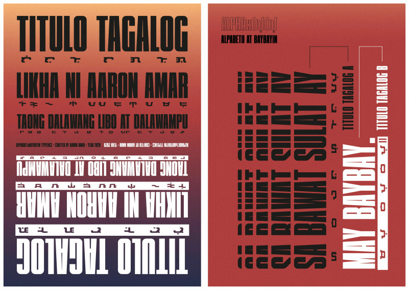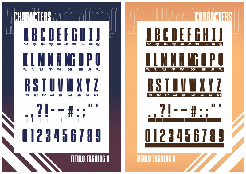 Titulo Tagalog Sans Serif Font by Aaron Amar is a modern compressed display Sans Serif Typeface fused with Baybayin under every syllables and powered with Ligatures for translation accuracy between Alphabet and Baybayin script for Filipino words. Ideal for titlings on your art and design projects.