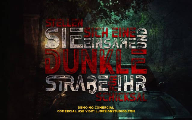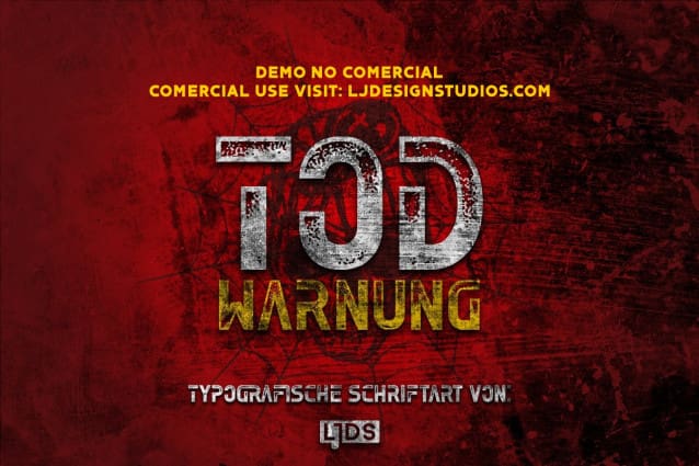 Tod Warnung Font, with its name in German we have an attractive and functional style, with a worn texture style based on brushes in Photoshop.