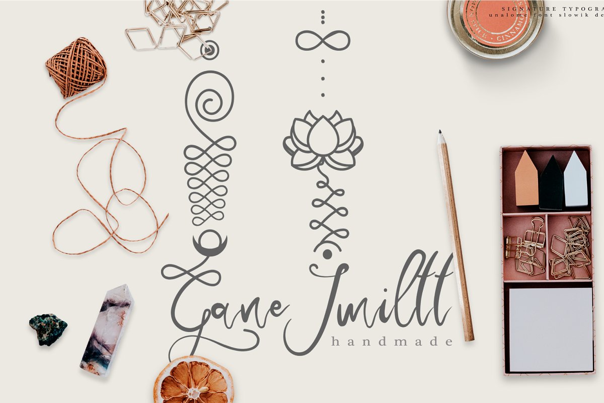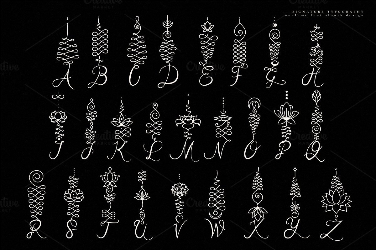 unalome calligraphy font by Aleksandra Slowik 22,739 downloads Found in: Calligraphy Fonts, Script Fonts unalome calligraphy font