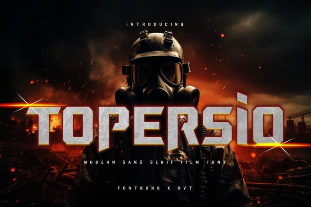 Topersio Font, a modern sans serif font crafted specifically for film-related designs. With its sleek lines and cinematic flair, Topersio brings the drama and excitement of the silver screen to your typography.