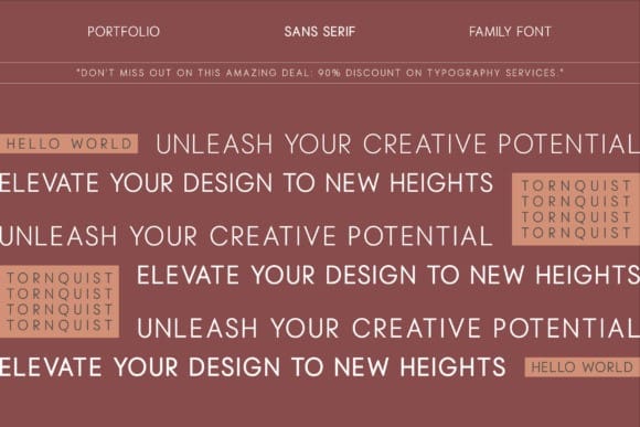 Tornquist Font Family a meticulously crafted sans-serif font family that redefines modern design. Featuring 5 distinct weights, it offers unparalleled versatility, seamlessly adapting to projects ranging from magazines and logos to film posters and beyond.