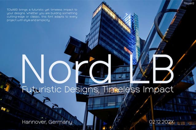 The font’s contemporary appeal makes it perfect for brands that embrace modernity and progress. With a refined balance between simplicity and boldness, Toward ensures text remains legible while exuding an ultra-modern feel. Its structured, streamlined design adds a professional and polished touch to every project, making it an excellent choice for industries like tech, engineering, and digital media.