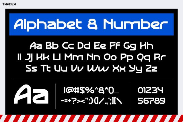 Besides that, itâs a smart choice for those who want to communicate innovation with clarity. Its geometric foundation ensures balance, while its futuristic tone adds excitement and power. Hence, TRADER is a great match for designers, developers, and visual storytellers who seek to elevate their work with a strong, confident typeface.