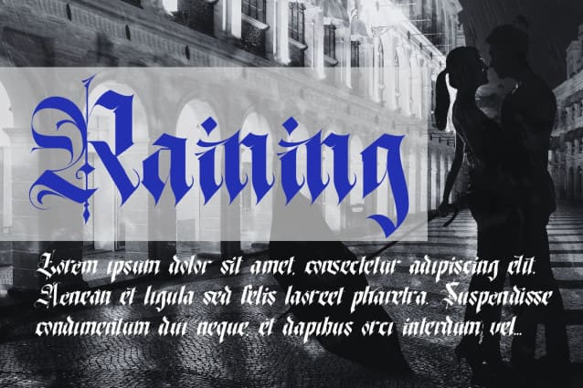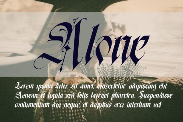Traditional Preparation Font is inspired by cool old style blackletter letters. This typeface has many ligature and a choice of several characters from uppercase or lowercase letters. A gothic display font a distinct, highly detailed, and chic Blackletter font. It would make a great choice for exquisite retro-urban designs, tattoo business branding, logos, vintage designs, movie, poster, apparel, illustration, and more.
