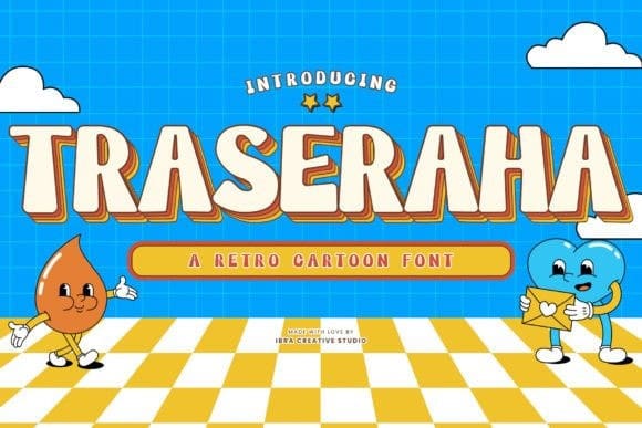 Traseraha Display Font, a captivating retro cartoon font, effortlessly channels the whimsical charm of classic animated aesthetics. Designed by the creative minds at Traseraha Studios, this font pays homage to the golden era of cartoons with its playful curves and vibrant personality. Each letter exudes a nostalgic vibe, reminiscent of vintage comic strips and animated shows, making it an ideal choice for projects seeking a touch of retro flair.