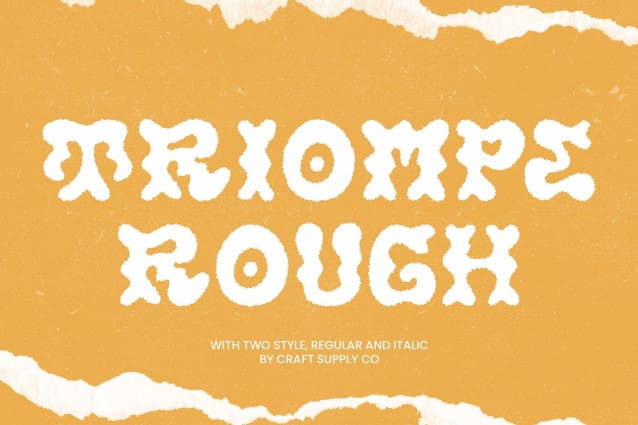Triompe Rough Font is a bold display font that captures the essence of psychedelic artistry. Its unique, curved, and unconventional letterforms radiate creativity and individuality. Designed to evoke a funky and energetic vibe, this font is a perfect choice for projects that aim to stand out with bold visual statements and dynamic appeal.