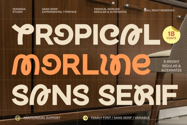 Perfect for branding, posters, packaging, headlines, editorial layouts, and creative projects that demand character and warmth, Tropical Morline stands out without losing versatility. Multilingual support is included.