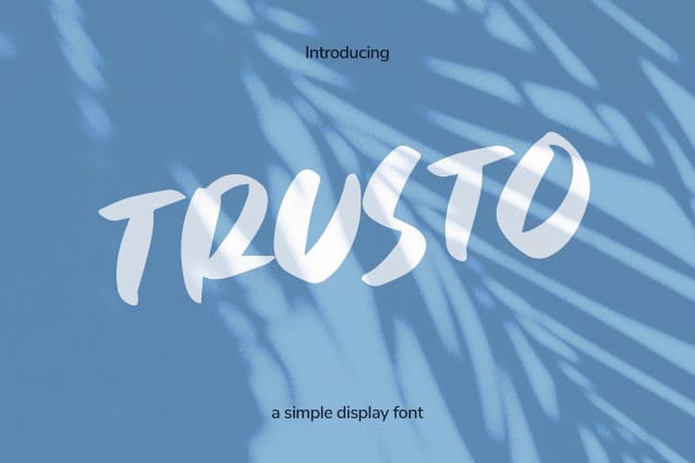 Trusto Font a unique display font from Strokes.ink. This handy sans serif includes a full character, numbers, punctuation & also alternate version. Perfect for big displays, titles, posters, marketing & advertising.