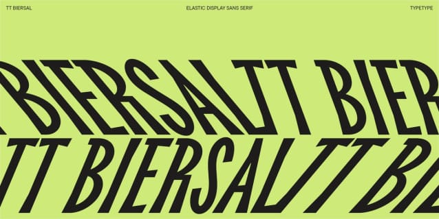 TT Biersal Font Family is a display sans serif with a free-spirited, playful, and adventurous nature. The concept of this font was sparked by a German poster from the early 1930s. We aimed to maintain the proportions of the reference along with an unpolished, lively feel of its lettering. As a result, we got a vibrant, dense font with narrow proportions and asymmetrical forms.