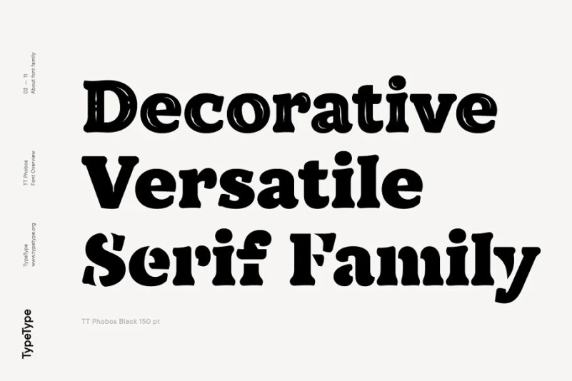 Especially for TT Phobos font family we’ve prepared a type specimen which can be downloaded here—https://typetype.org/wp-content/uploads/tt_phobos_specimen.pdf