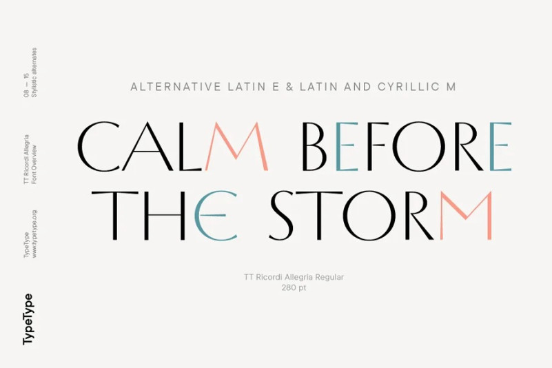 Especially for TT Ricordi Allegria font family we’ve prepared a type specimen which can be downloaded here—https://typetype.org/wp-content/uploads/tt_ricordi_allegria_specimen.pdf