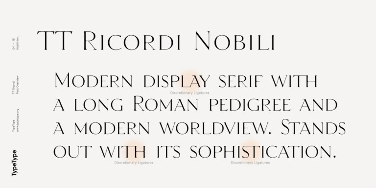 TT Ricordi Nobili Serif Font, Suitable for any design needs : logo, branding, modern advertising design, logos, poster quote, book / cover Title, editorial design, website / blog, card, t-shirts,…