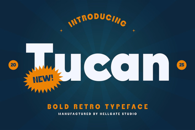 Experience the joys of adding an aesthetic edge to your work with Tucan Bold Retro Typeface.