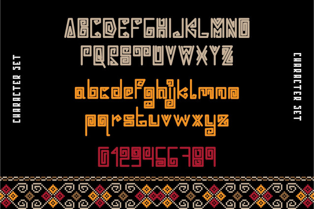 Umsaga Display Font is a bold and expressive ethnic-style display font designed by Nokturnal13. Inspired by traditional cultural motifs and tribal aesthetics, this typeface blends ancient symbolism with a modern typographic structure. UMSAGA is perfect for projects that aim to capture a sense of heritage, mysticism, and bold artistic identity.