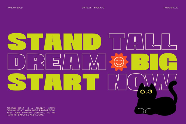This font is used only for demos (Demo license). If you want to use this font for commercial use please contact: https://creativemarket.com/roomspace/291987155-Uneko-Bold-%E2%80%93-A-Playful-Chunky