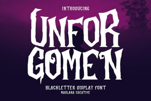 Unforgomen Display Font is a modern blackletter font is a unique typeface that combines traditional calligraphic elements with contemporary design elements. This font style is ideal for projects that require a strong, classic feel with a touch of modernity. This font is PUA encoded which means you can access all glyphs and swashes effortlessly!