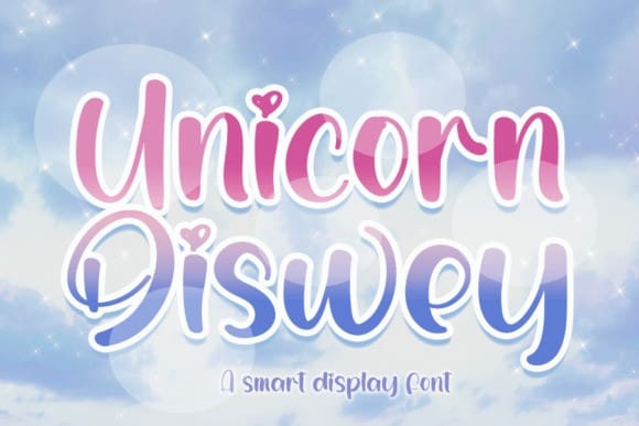 Unicorn Diswey Font is a beautiful display font perfect for magazines and crafts. Add it to your fonts library, and use it to create spectacular designs!