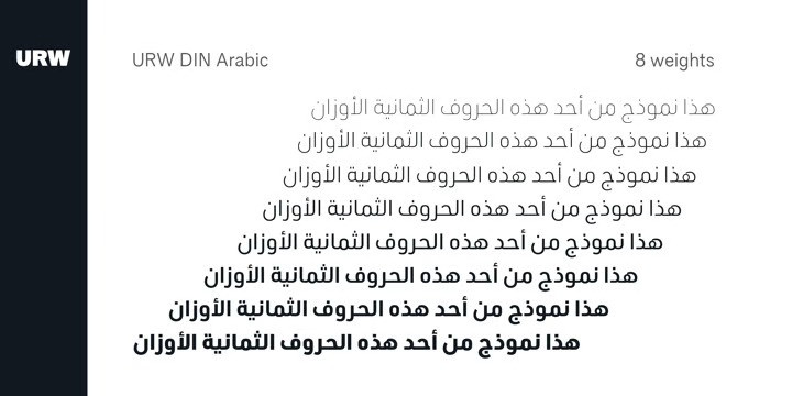 This font is used only for demos (Demo license). If you want to use this font for commercial use please contact: https://www.myfonts.com/collections/urw-din-arabic-font-urw