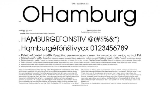 URW Gothic family includes two weights and corresponding Italics. It’s perfect for headlines, brief texts used on any screen, print materials as well as logos.