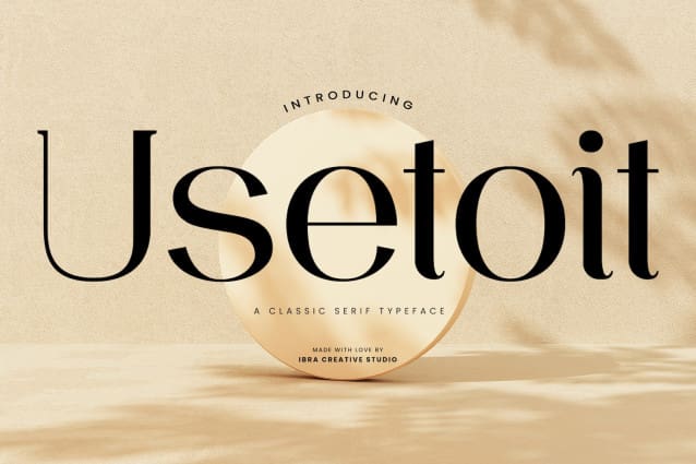This font is used only for demos (Demo license). If you want to use this font for commercial use please contact: https://ibracreative.com/index.php/product/usetoit-a-classic-serif-typeface/