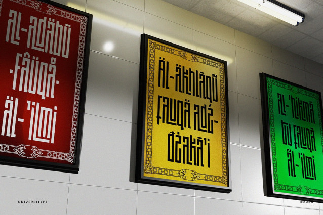 This font is used only for demos (Demo license). If you want to use this font for commercial use please contact: https://creativemarket.com/universitype/291994456-UT-Arabikufi-A-Latin-Kufi-Font