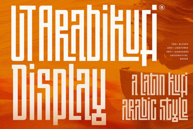 UT Arabikufi Display Font a fresh, architectural take to cultural typography. Inspired by the structure and rhythm of classic Kufi forms, this typeface translates that visual spirit into a tall, expressive Latin display style built for standout design.