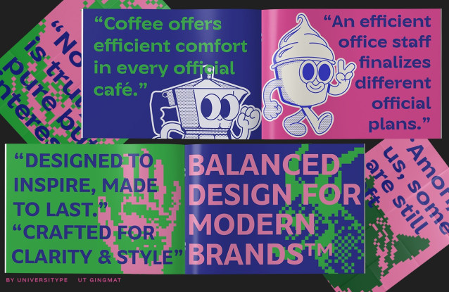 UT Gingmat Font is a modern, geometric sans-serif font crafted to turn heads and make a statement. With its bold curves and playful details, it bridges the gap between futuristic sharpness and approachable friendliness. Designed for branding, posters, digital interfaces, and any project that demands attention, Gingmat delivers clarity with personality.