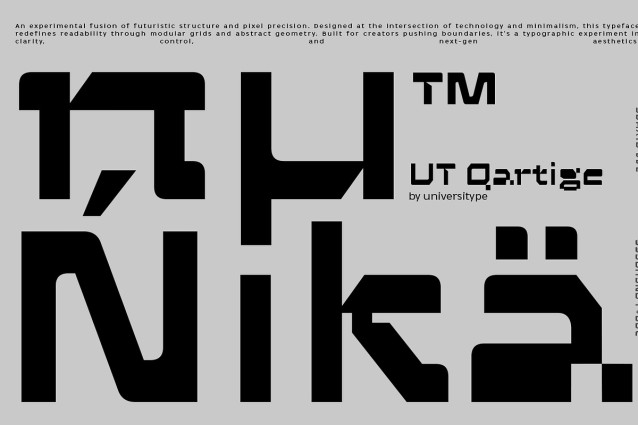 UT Qartige Font is a techno-futuristic typeface born from the fusion of machine precision and digital rebellion. With its angular cuts, micro-line illusions, and bold, cyberpunk edge, this font feels like it just stepped out of a high-tech lab or a VR command center. Every letterform is designed to look like a data stream in motion—clean, coded, and full of character. It’s unapologetically modern, slightly disjointed for that “floating element” effect, and unmistakably built for a digital-first world.