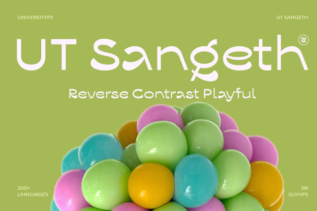 UT Sangeth Font is a modern, playful display typeface with a distinctively rounded, soft geometric structure and quirky character details. It combines a childlike whimsy with a clean, futuristic edge, making it both approachable and stylish. Perfect for grabbing attention and adding a unique personality to your designs.