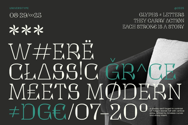 Versatile Application: Perfect for headlines, branding, editorial design, posters, and any creative endeavor where a blend of classic and modern is desired.