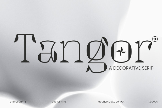 UT Tangor Font is a distinctive decorative serif typeface that masterfully blends classical elegance with contemporary flair. Designed for impact and refined aesthetics, UT Tangor stands tall with vertical poise, featuring sophisticated curves and sharp, intentional details. It’s a font that doesn’t just convey words, but imbues them with grace and character, making it ideal for projects that demand a unique and memorable visual presence.