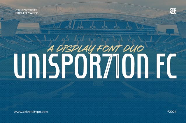 This font is used only for demos (Demo license). If you want to use this font for commercial use please contact: https://creativemarket.com/universitype/290292100-UT-Unisportion-FC-Font-Duo?u=fontlot123