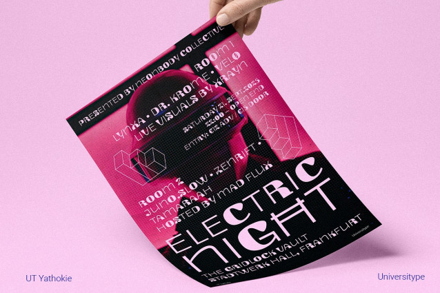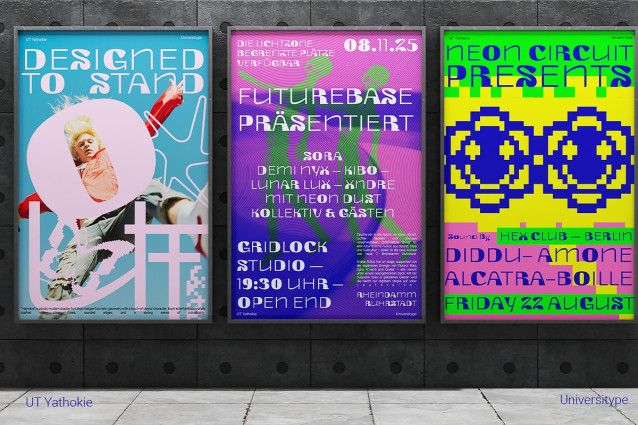 UT Yathokie doesn’t follow rules, because rules are boring. It’s a quirky, unpredictable display font that brings a jolt of personality to whatever it touches. Think techno-pop with a sketchbook soul. This typeface thrives in the space between structure and spontaneity, clean on one edge, full of surprise on the other.