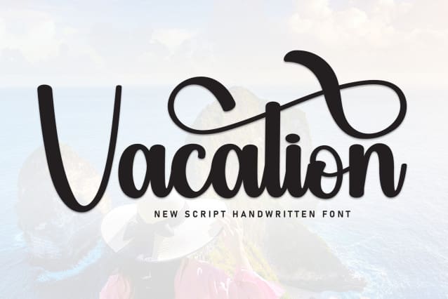 Vacation Typeface is a stylish handwritten font with a contemporary atmosphere and impeccable form, inspired by timeless classic calligraphy. Balanced and varied, this font was designed to enhance the beauty of your projects.