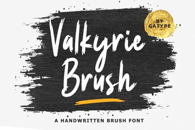 Valkyrie Brush Font, is a unique textured brush font, because this brush font is made digitally. contemporary approach to design, and has underlines and also has several ligatures.