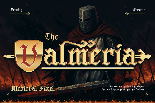 This font is used only for demos (Demo license). If you want to use this font for commercial use please contact: https://creativemarket.com/Burntilldead/291767863-Valmeria-Medival-Pixel?u=fontlot123