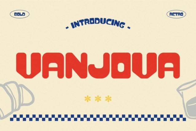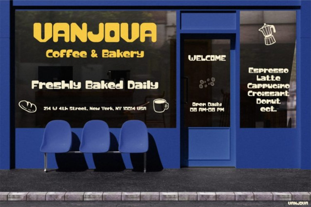 Retro Font VANJOVA is ideal for coffee shops, bakeries, cafés, food trucks, and retail brands. Likewise, it suits designers working on packaging, menu boards, labels, and promotional posters. Moreover, content creators, small business owners, and Instagram marketers will appreciate its bold presence and easy readability. If your brand values warmth, personality, and retro appeal, VANJOVA is a perfect match. Therefore, this font works best for projects that aim to feel bold, fun, and commercially strong.