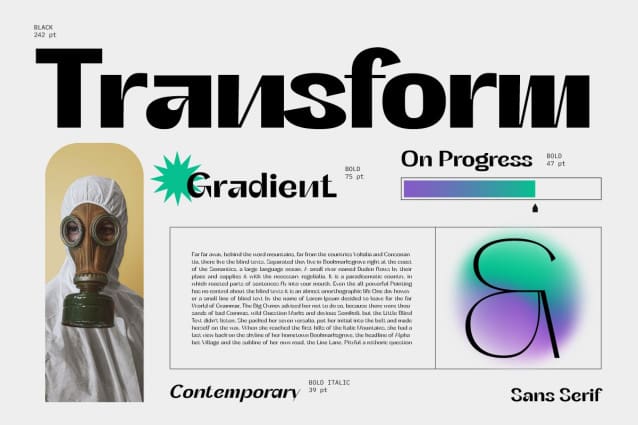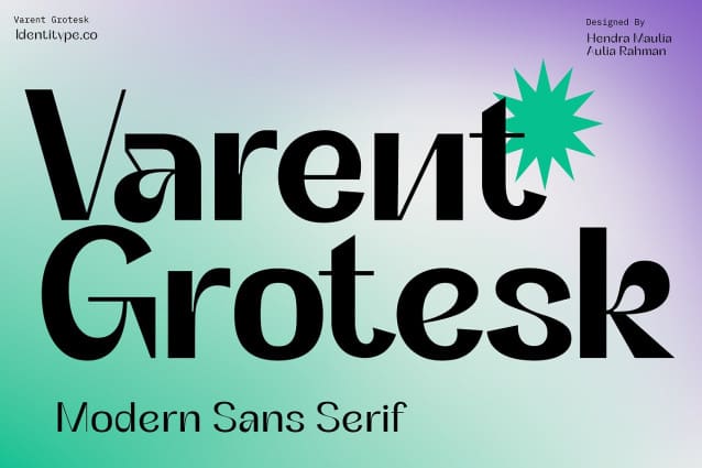 Varent Grotesk Font Family, a sans serif family designed by Hendra Maulia and Aulia Rahman who was inspired by modern sans serif. The weights of the family itself contain 18 styles plus italic, ranging from Thin to Black. Ideally, it works to capture in a graphic way the universe related to technology, sci-fi, industry, and similar topics. It is a mixed family because of the construction of certain letters (as in “a”, “e”, “h”, “k”, “A”, “B”, and more). Another important line in the creative concept of this typeface is the function of its ink traps, which, in addition to fulfilling their primary function, serve to gain gestuality in its use.
