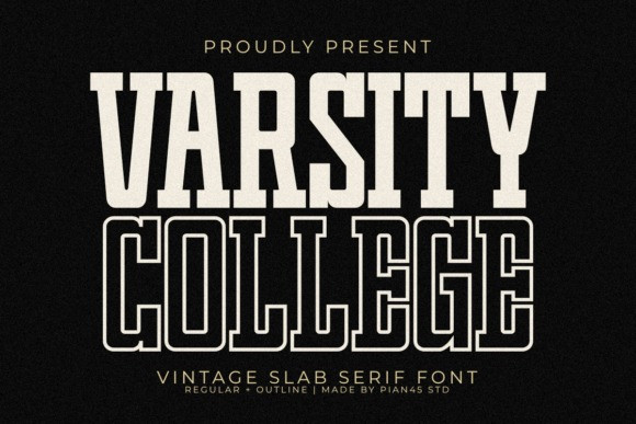 Varsity College Slab Font is a powerful, vintage slab serif font built to capture the classic, nostalgic spirit of American collegiate and athletic branding. With its bold, condensed letterforms, this typeface provides maximum impact and visibility, making it perfect for high-energy designs. The font comes complete with Regular and Outline styles, allowing you to easily layer them for an authentic, dynamic, retro athletic look. Whether you’re designing team apparel, college merchandising, event posters, or vintage-inspired logos, Varsity College delivers a strong, reliable, and instantly recognizable aesthetic.